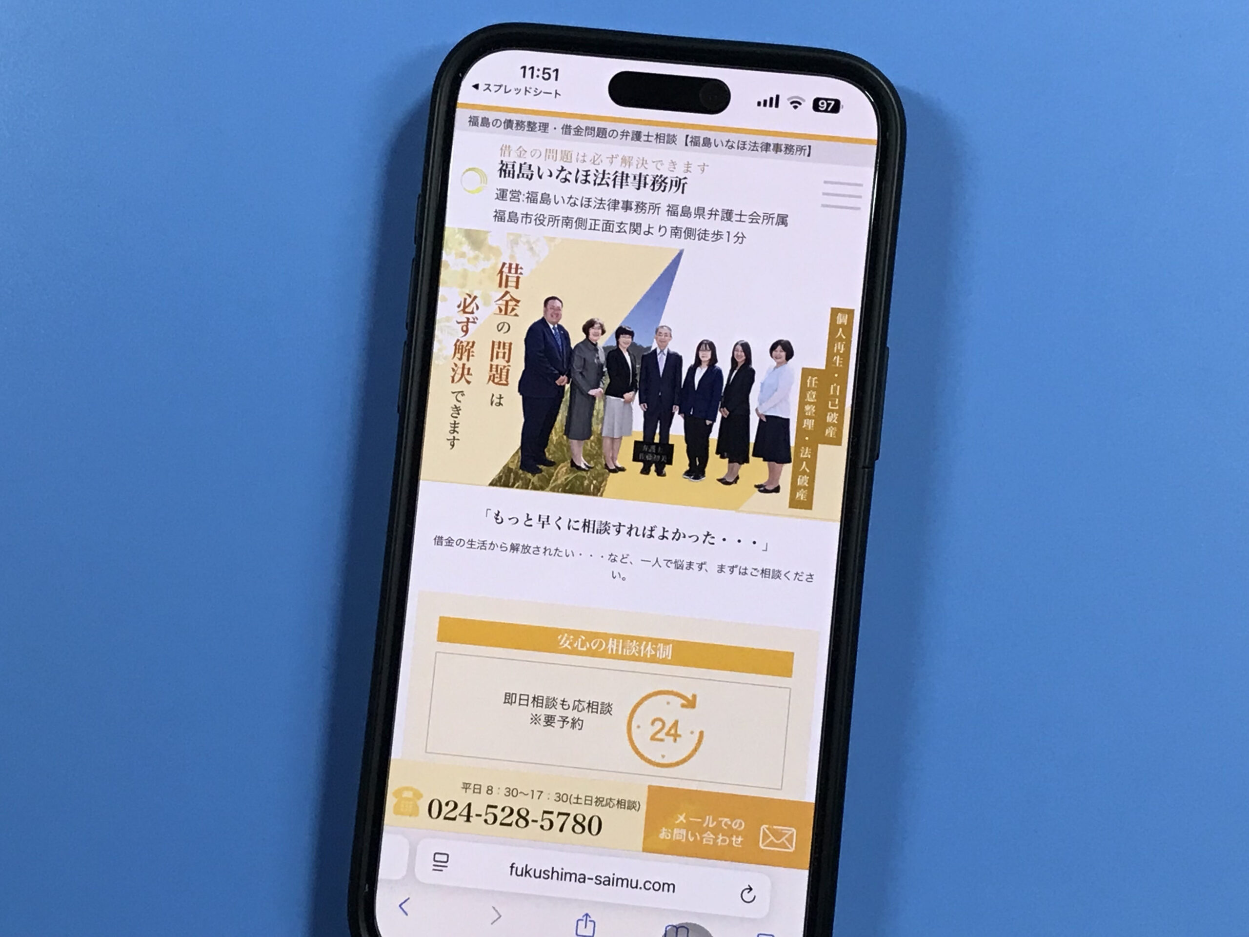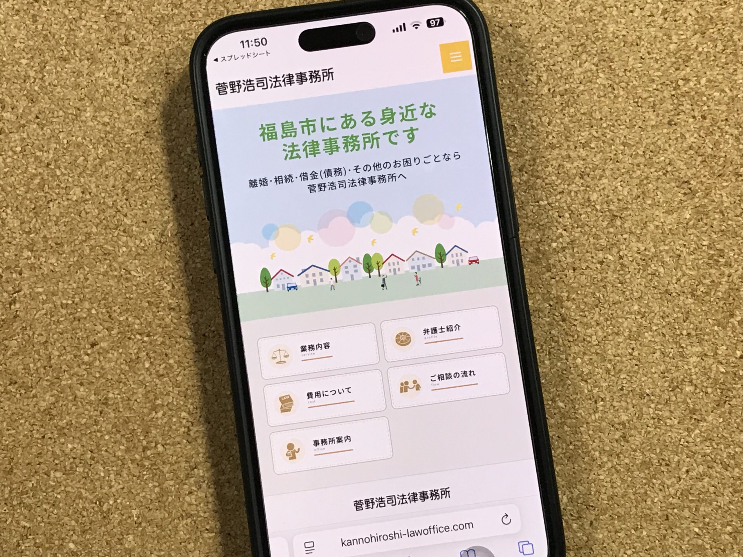 - 相談内容:借金(債務整理)・金銭トラブル(貸金・損害賠償)・離婚(養育費・財産分与)・相続・労働問題など