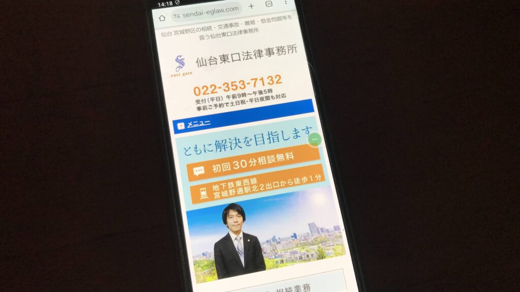 仙台東口法律事務所は平成28年8月に開設され、相続・交通事故・離婚・借金問題などを専門的に扱う仙台市宮城野区の法律事務所です。