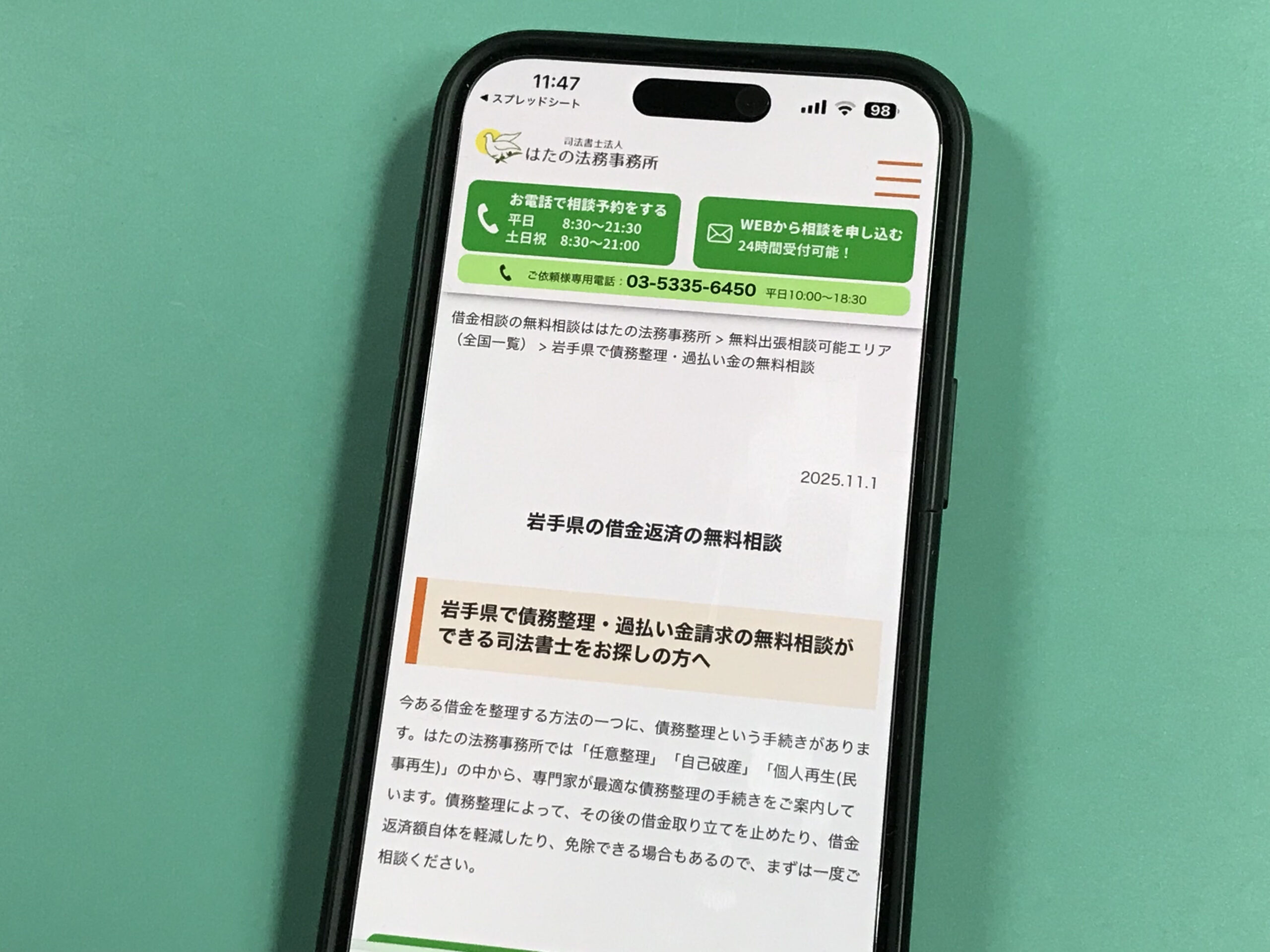 司法書士法人はたの法務事務所は岩手県を中心とし、債務整理や過払い金請求に特化した法律サービスを提供しています。