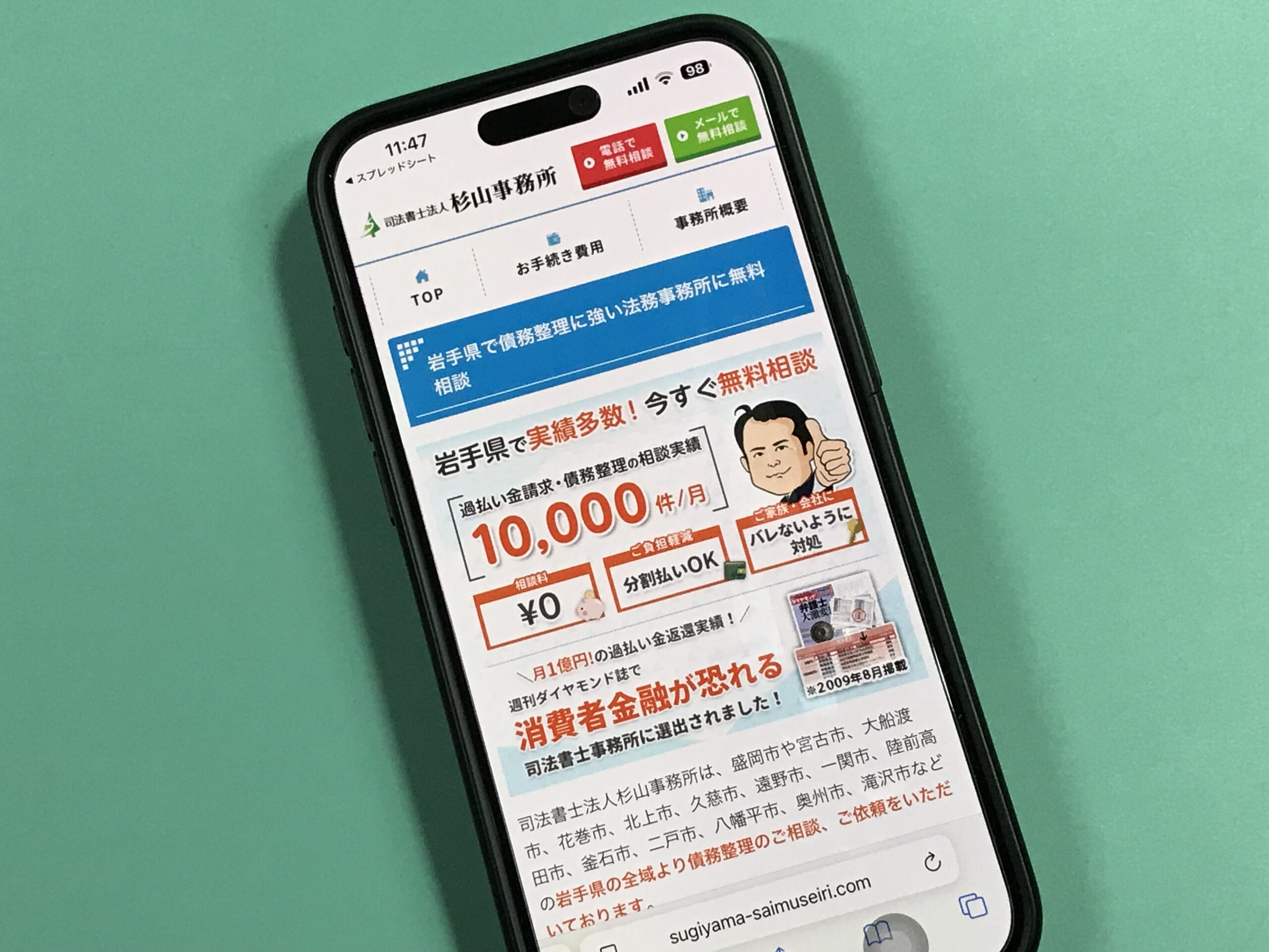 - 全国に拠点を持つ司法書士法人杉山事務所は、岩手県内で月10,000件以上の相談に対応し、債務整理で多くの実績を誇ります。