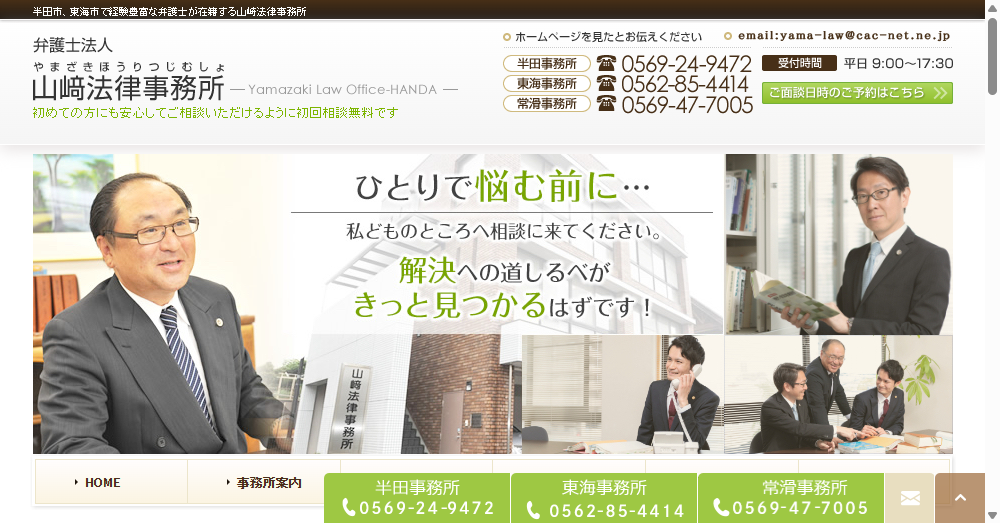 弁護士法人山崎法律事務所は、愛知県半田市と東海市を中心に法律相談を提供する業界で評判の法律事務所です。