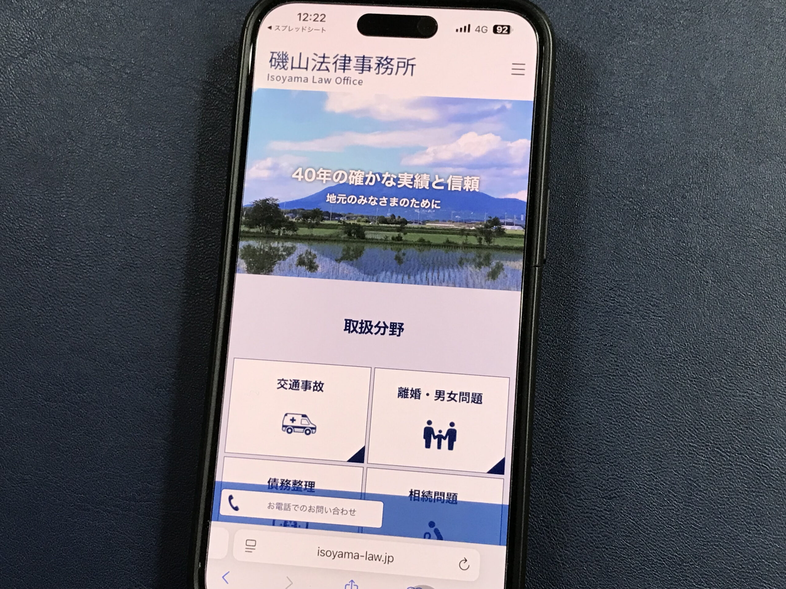 | 対応可能業務 | 交通事故、借金問題、離婚、相続、労働、刑事事件など広範囲の法律事務 |