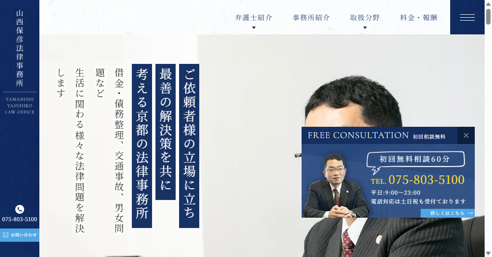 山西保彦法律事務所は京都府京都市中京区に位置し、特に借金や債務整理において豊富な実績を誇る法律事務所です。