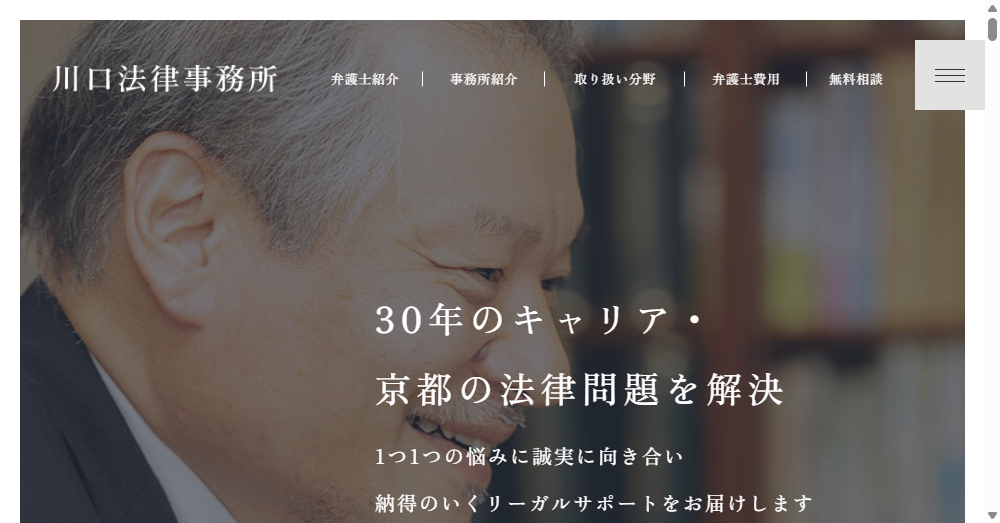 - 刑事事件から労働問題、離婚事件まで幅広い業務に対応し、京都市内で地域密着の法律サービスを展開。多様な法律問題に精通した弁護士がサポートします。