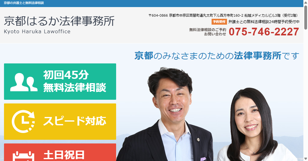 京都はるか法律事務所は京都市中京区に位置する信頼の法律事務所で、地域の皆様に向けた柔軟な無料法律相談を提供しています。