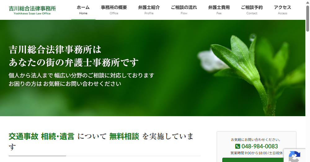 • 平日9:00から18:00の営業で、吉川駅北口から徒歩1分のアクセス便利なロケーションで、迅速な法律相談をお約束します。