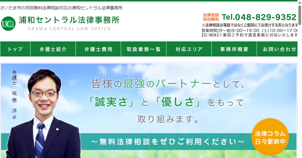 浦和セントラル法律事務所は、さいたま市に位置し初回無料法律相談を提供する法律事務所です。