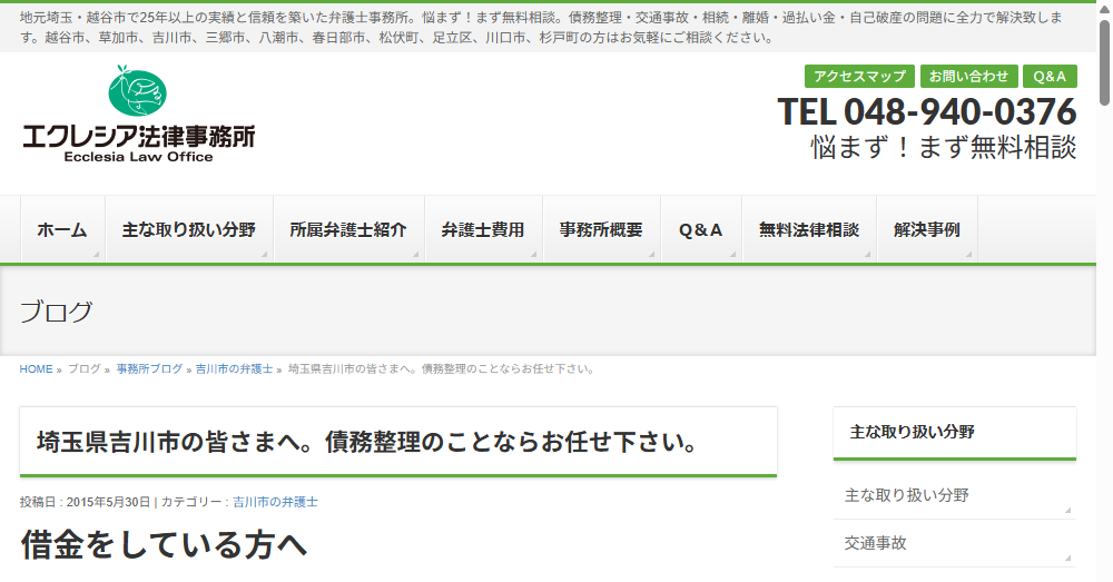 • 25年以上の実績を誇るエクレシア法律事務所は、埼玉県越谷市に拠点を置き、債務整理や交通事故、離婚問題等幅広い法律サービスを提供しています。